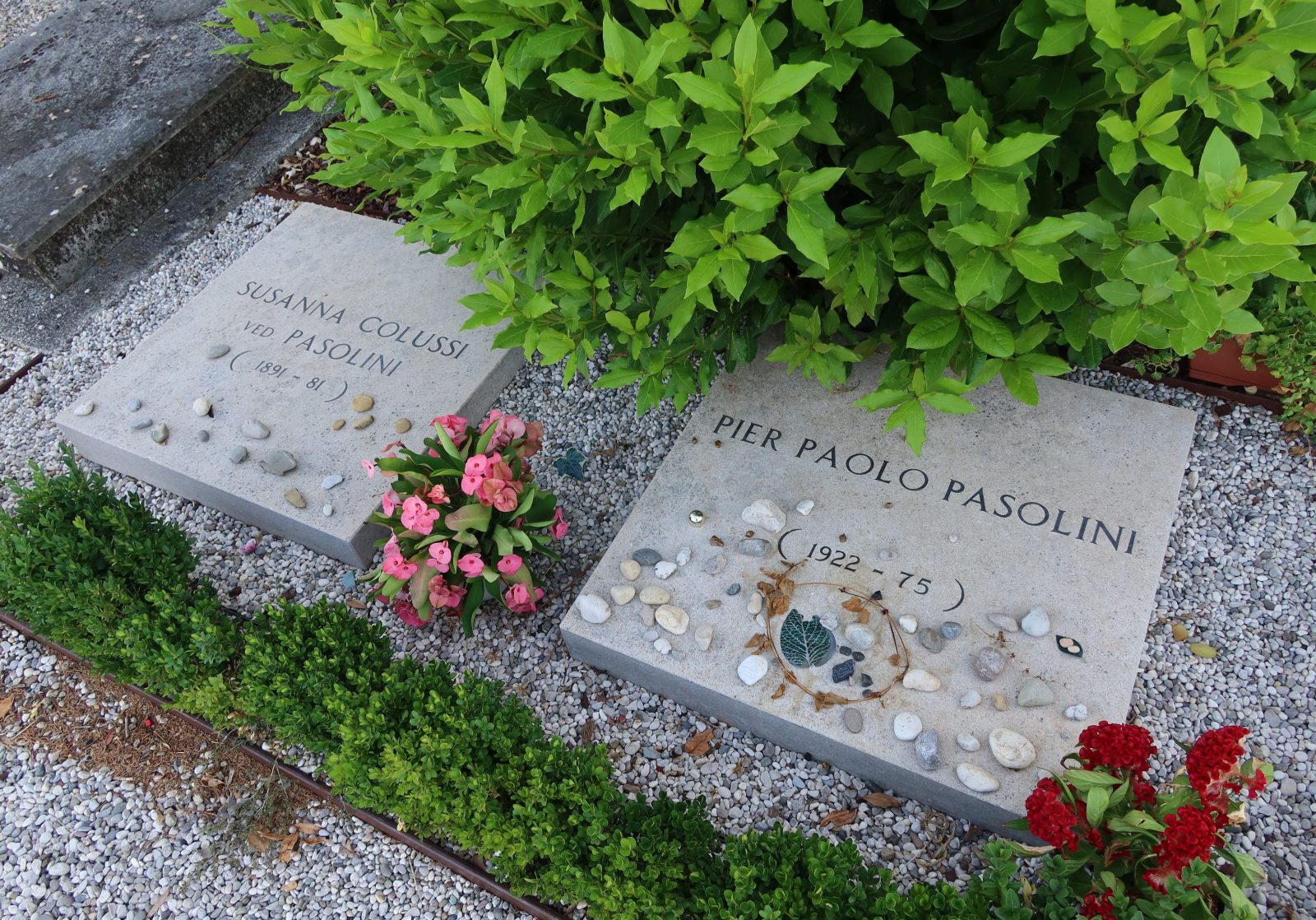 Pasolinijev grob v Casarsi, kjer je pokopana tudi njegova mati.