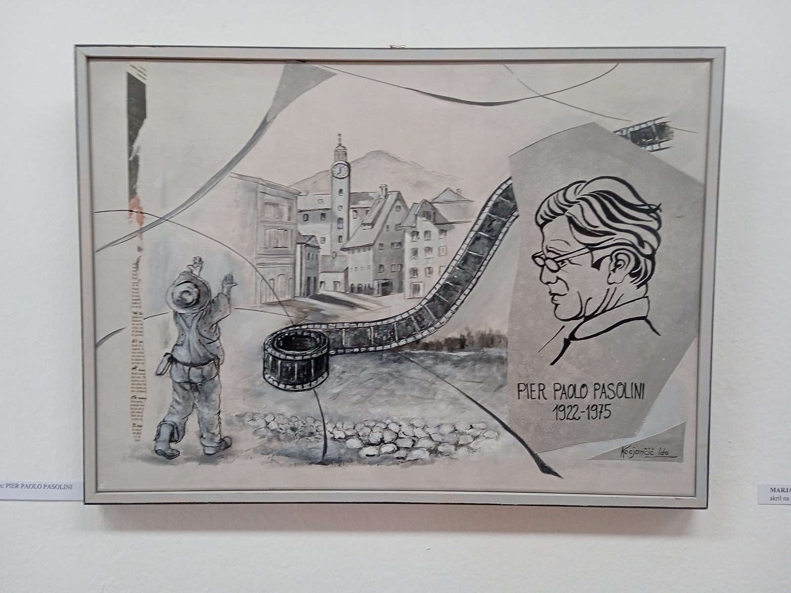 V Idriji je v galeriji Magazin na pobudo društva Cinober na ogled likovna razstava na temo likovnih podob Pasolinija, Idrije in mesta. (Avtorstvo slike na fotografiji: Ida Kocjančič, Miren: Pier Paolo Pasolini, akril na platnu)